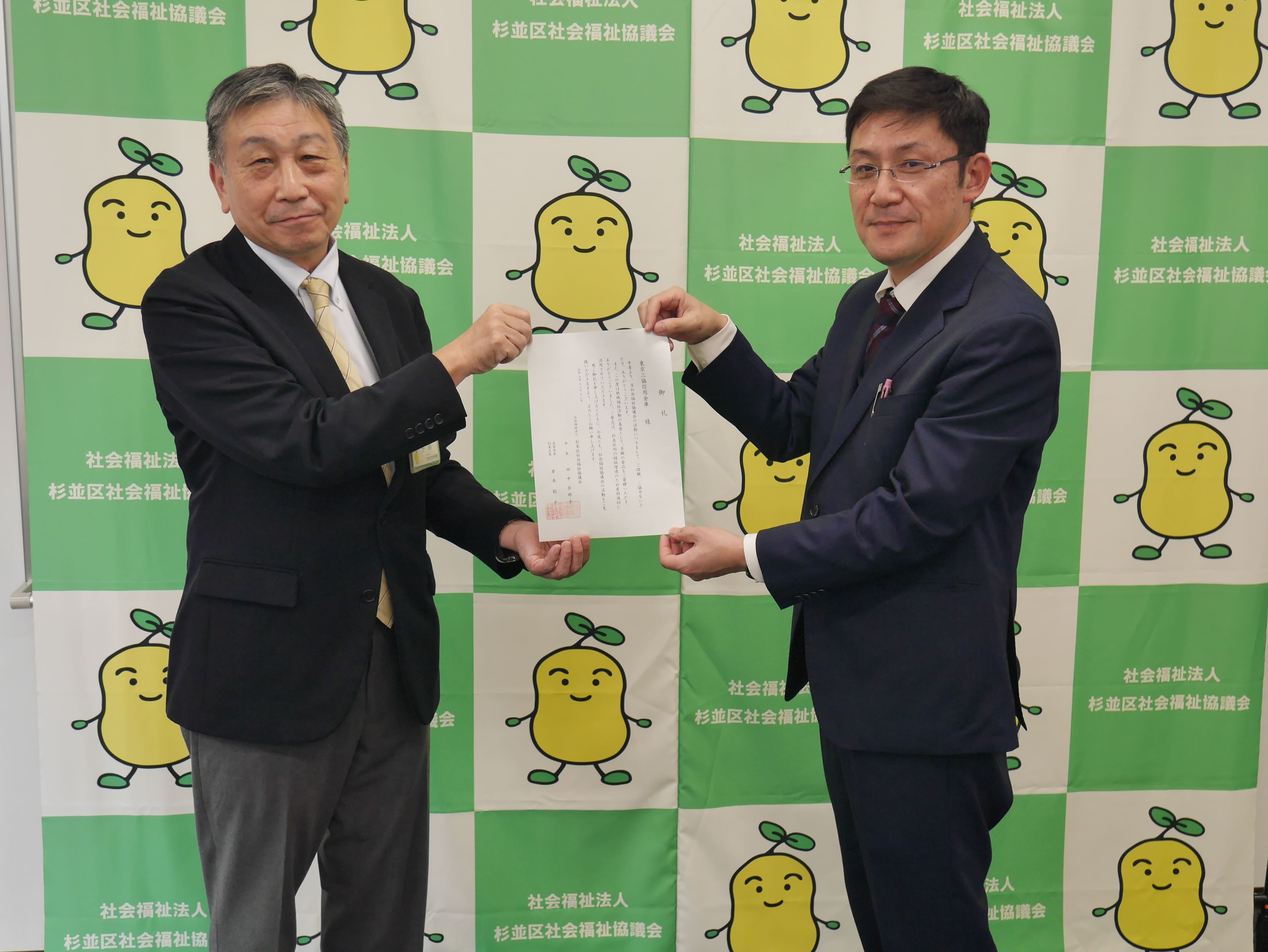 この度、2店舗がある杉並社協にもご寄附いただき、本会常務理事より御礼状を贈呈しました。