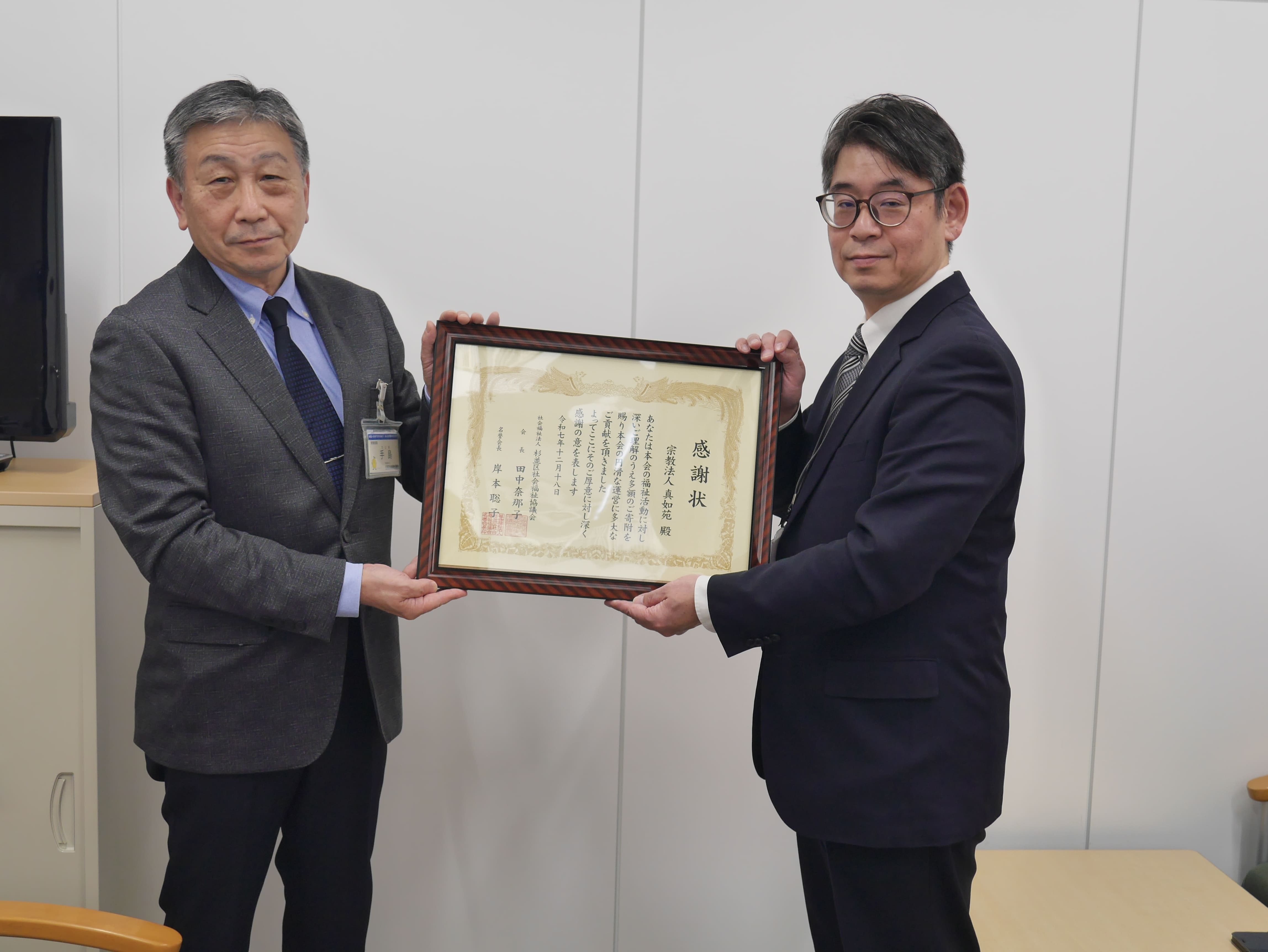 今年度もご寄附いただき、本会常務理事から感謝状を贈呈いたしました。